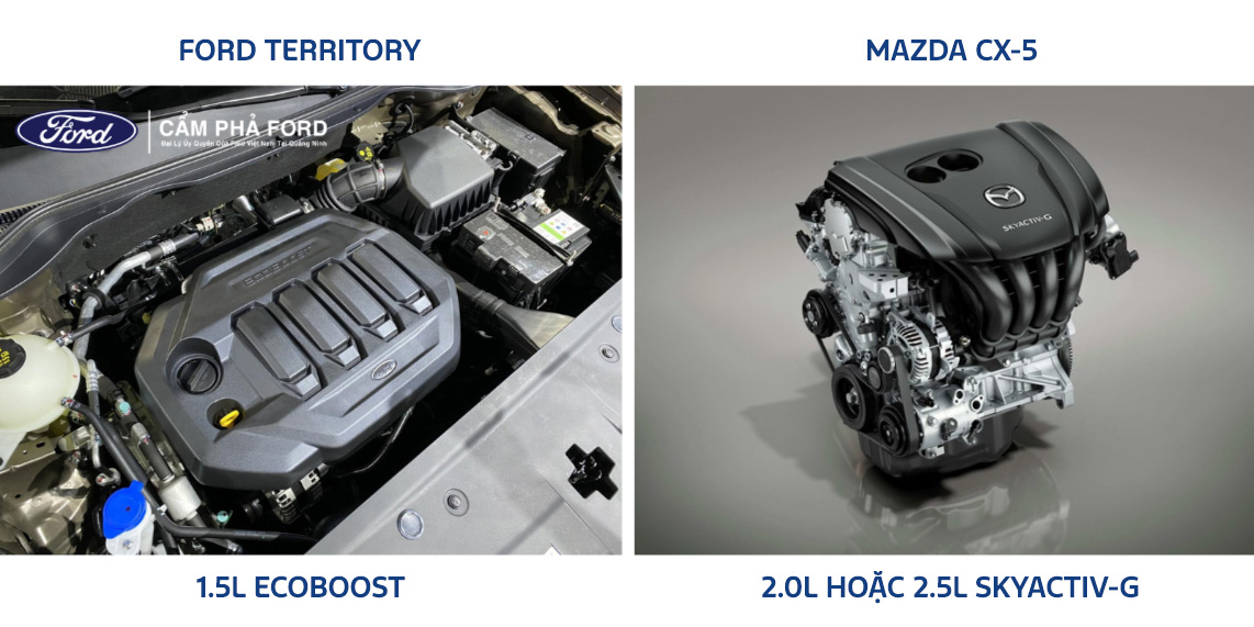 - Ford Territory thiên về vận hành êm ái, tiết kiệm nhiên liệu, lý tưởng cho đô thị và đường trường.