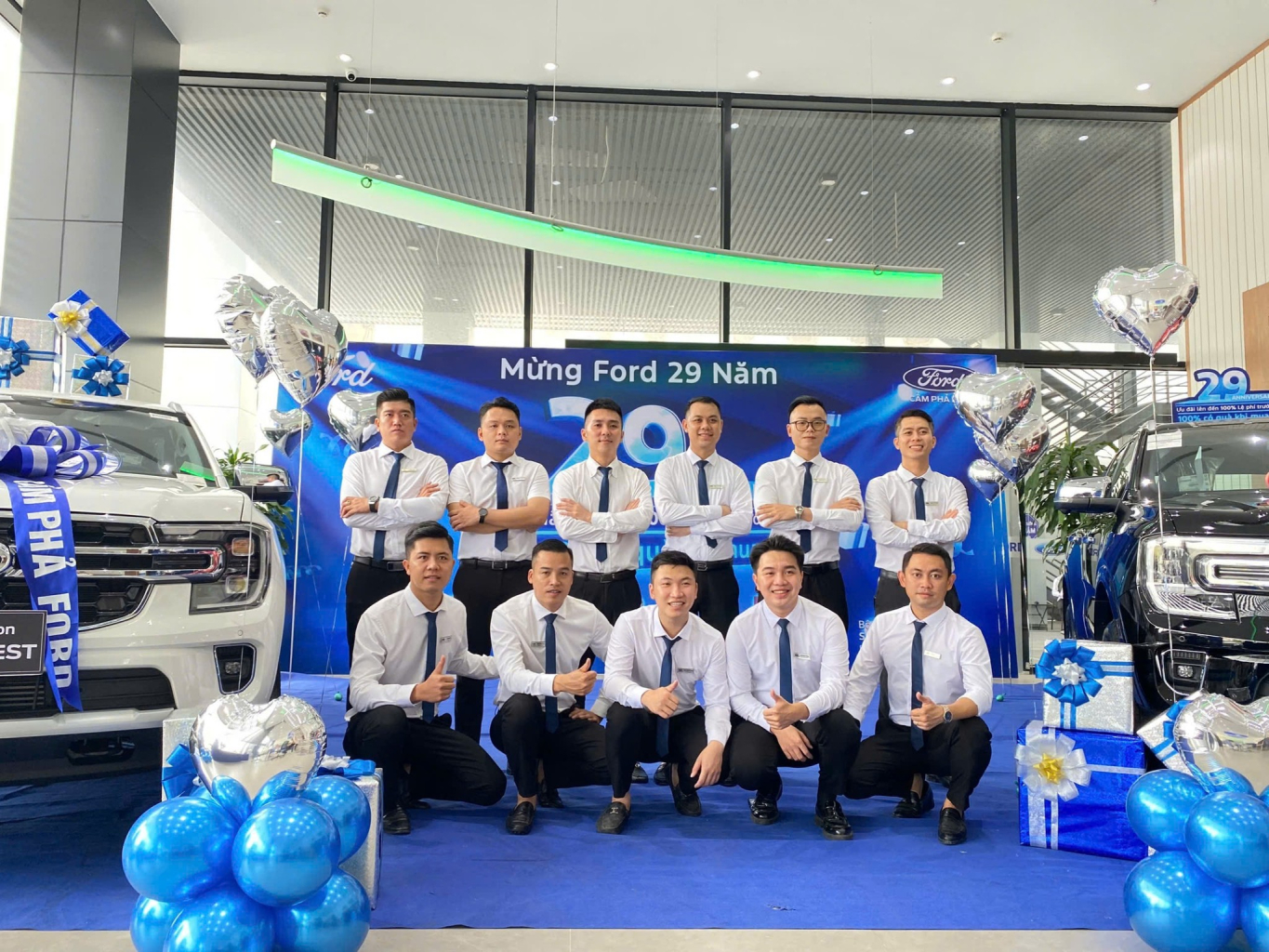 Hình ảnh đội ngũ Tư vấn Bán hàng chụp ảnh trước sự kiện tại Đại lý Cẩm Phả Ford