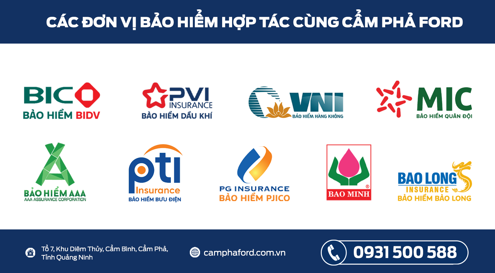 Cẩm Phả Ford hiện đang hợp tác với nhiều đơn vị bảo hiểm ô tô uy tín tại Quảng Ninh, bao gồm:
