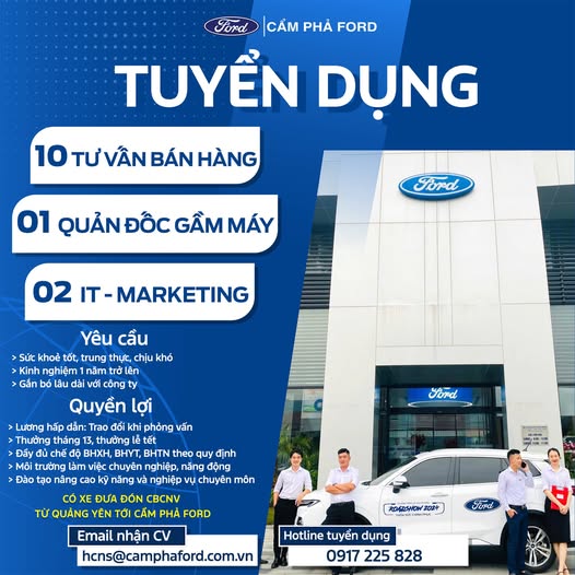 CẨM PHẢ FORD TUYỂN DỤNG NHIỀU VỊ TRÍ HẤP DẪN
